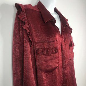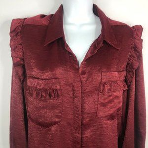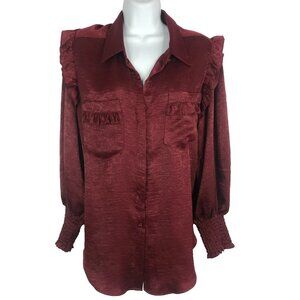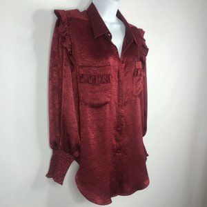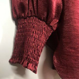Misa Los Angeles Donata Satin Blouse Shirt Size M Wine Red Burgundy Ruffled Goth