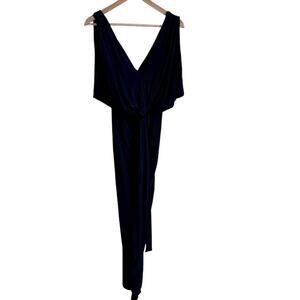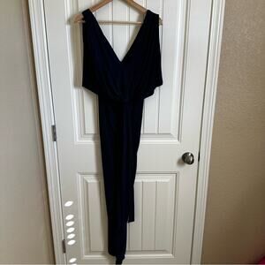 Misa Los Angeles Elegant Navy Blue V-Neck Evening Gown Formal Draped Maxi xs