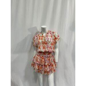 Misa Los Angeles 'Eloisa' White Polyester Dress Size XS: fully lined, partial front button closure, smocked elastic waist, chiffon fabric with tiered ruffle skirt.