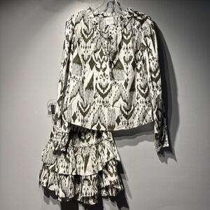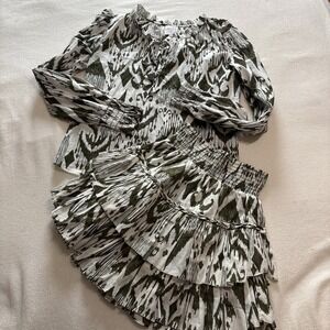 Misa Los Angeles Evienne Green/White 2pc Outfit Tiered Skirt & Blouse SzXS Boho