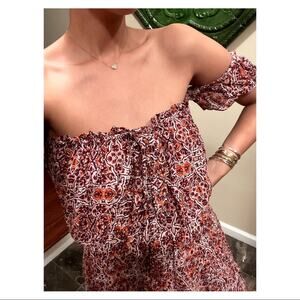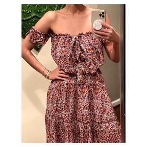 Misa Los Angeles Floral Off Shoulder Mid Length Dress RARE Find