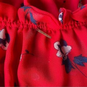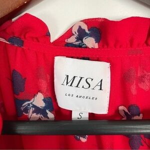Misa Los Angeles Floral Ruffle Dress Size Small Red Cream Blue