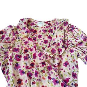 floral, wrap, mini, ruffle, girly, girlycore, romantic, date night, summer, spring, garden party, brunch, easter