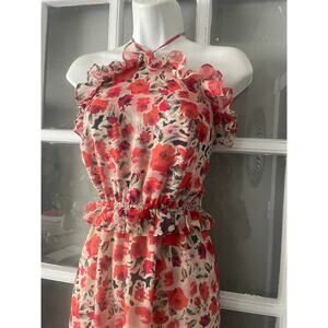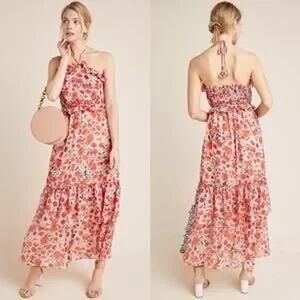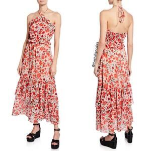 Misa Los Angeles Gia Floral Halter Dress Size Small Maxi Chiffon Tiered