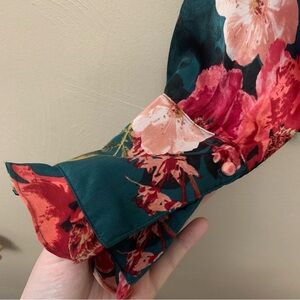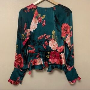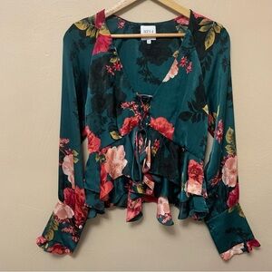 Misa Los Angeles Green Floral Bloom Lace Up Peplum Ruffles Blouse Top Size Small