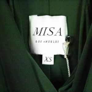 Misa Los Angeles green jersey knit sleeveless v neck fitted cocktail formal maxi dress.