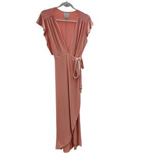 Misa Los Angeles Irina Wrap Maxi Dress Small Pink Draped Formal Belted Ruffle