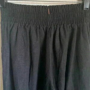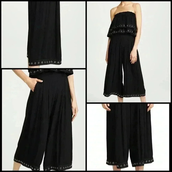 Misa Los Angeles Kova Linen Blend Gaucho Cropped Wide Leg Gold Grommet Trim Black Pants