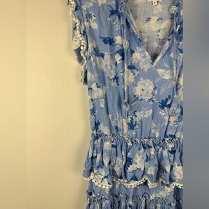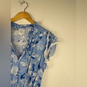 Misa Los Angeles Lilian Dress Blue Tiered Linen Floral Mini Ruffle Women’s Sz M