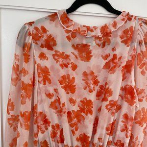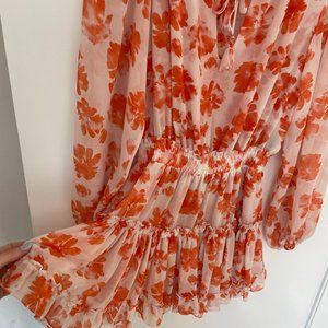 Misa Los Angeles Lorena Long Sleeve Mini Dress Orange Floral Ruffle Chiffon XS