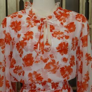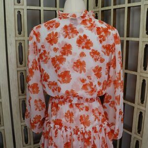 Misa Los Angeles Lorena Orange & White Floral Ruffle Mini Dress size M