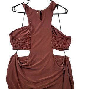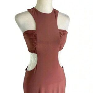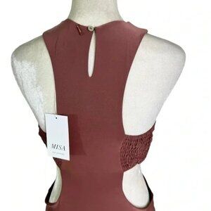 Misa Los Angeles Lyra Mauve Sleeveless Cutout Maxi Ruched Button Body Con XL