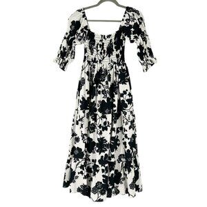 Misa Los Angeles Margarita Off Shoulder Dress in Floral Negra