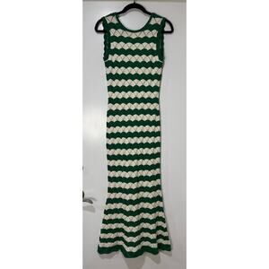 Misa Los Angeles Miss Rosalia Crochet Knit Maxi Dress Emerald Cream Small NWT