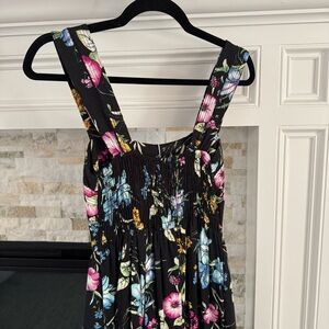 Floral maxi dress with smocked back and pockets. Runs larger due to smocked backing) fits up to a size 6. Waist 12” unstretched, 14.5” stretched.