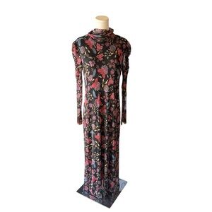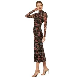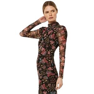 Misa Los Angeles - NWT Vivienne Mesh Black Floral Long Sleeve Midi Dress Sz L