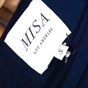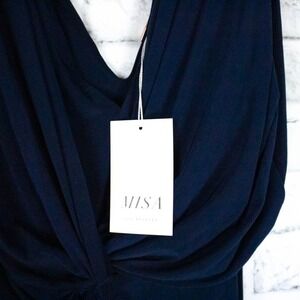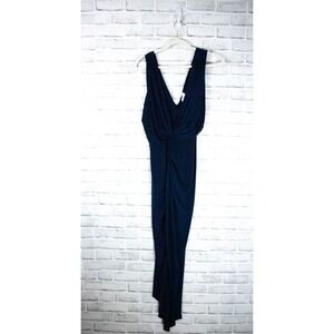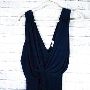 Misa Los Angeles Navy Blue Jersey Plunge Neck Sleeveless Midi Dress Small Formal