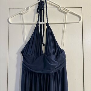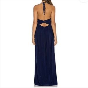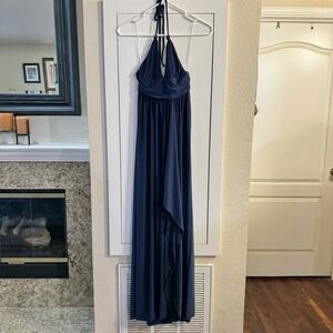 Misa Los Angeles Navy Ever Maxi Dress Leg Slit Revolve Halter Size Medium