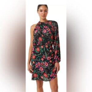 Misa Los Angeles Notta Black Floral One Shoulder Cocktail Dress