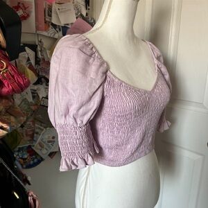 Misa Los Angeles Pink Puff Sleeve Smocked Crop Top Medium
