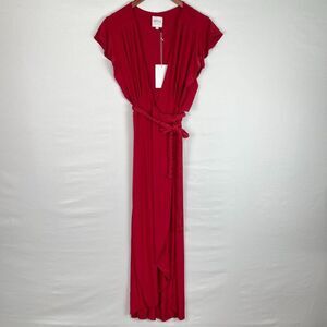 Misa Los Angeles Revolve Irina Wrap Maxi Braided Tie Ruffle Sleeve Dress Red S