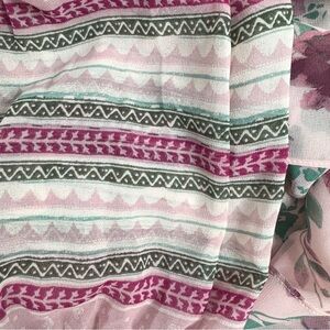 Gorgeous Misa Los Angeles blouse from Revolve in a pink and green floral print. Flowy bohemian style with feminine details — perfect for spring, summer, vacation, or festival outfits. Women’s size XS. Excellent condition but does have a snag at back sleeve that blends with the pink strip.