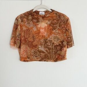 Misa Los Angeles Rumer Crop Top in Golden Batik Floral Mesh Size Medium NWT