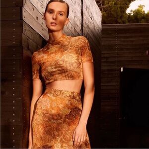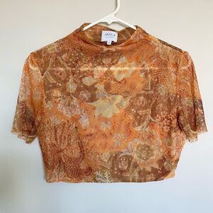 Misa Los Angeles Rumer Crop Top in Golden Batik Floral Mesh Size Small NWOT
