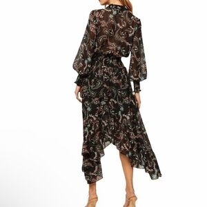 Misa Los Angeles S Midi Dress Zahra Long Sleeve Floral Paisley Asymmetrical