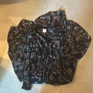 Great preowned condition. Women’s small. Enchanted Paisley colorway. This Zahra dress is made of lightweight non stretch chiffon, paisley print, collared neckline and button placket, long sleeves, smocked elastic waistband and cuffs, asymmetrical hem with ruffle trim, unlined bodice, lined skirt. Made in USA. Approximate measurements: 40” shoulder to shortest part of hem and 53” to longest part of hem. Flattering, event, special occasion, cocktail, dark, feminine, girly, fall, winter, transitional, colorful, multicolored, boho, bohemian, flirty, romantic, flowy, relaxed fit, stretchy, brunch, vacation, Revolve, leaves, church.
