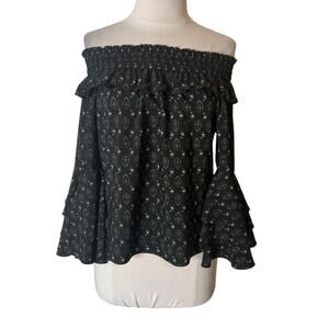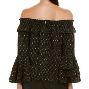 Misa Los Angeles Saskiya Black Multi Off-The-Shoulder Printed Blouse Sz XS
