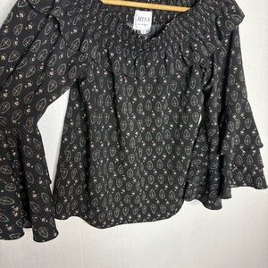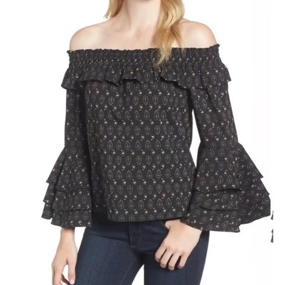 Misa Los Angeles Saskiya off the shoulder ruffle sleeve blouse black size small