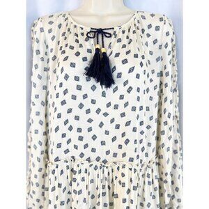 Color is an off-white/antique white with navy blue pattern.