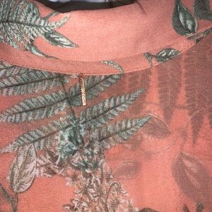 Chic terracotta blouse with leaf design. Ideal for versatile styling.