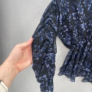 Misa Los Angeles Top Womens XS Blue Kesara Floral Chiffon Blouse Feminine Boho