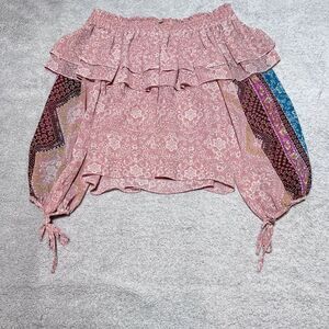 Misa Los Angeles Top Blouse Womens XS Pink Floral Sheer Boho Off the Shoulder. Excellent condition, no stains or tears, please review all photos. See photos for measurements. Thanks for visiting!