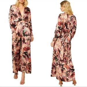 Misa Los Angeles Veronika Watercolor Floral Long Top, brand new with tags. Hi-lo silhouette design; self tie in the front, size small, cuffed sleeves.