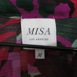 Misa Los Angeles Women Sz M Multicolor Button Front Long Sleeve Top Gold Shimmer