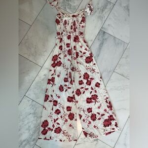 Misa Los Angeles women’s Small linen blend floral pink white wide leg jumpsuit