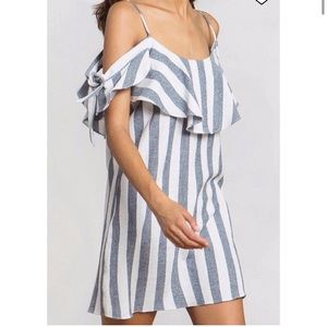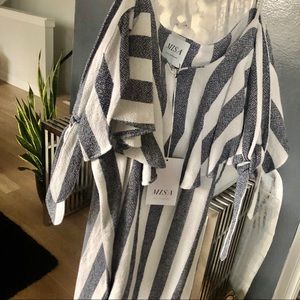 Brand new Misa dress, cutout shoulders and bow tie details. Blue and white stripes with adjustable shoulder straps. Prefect for summer!