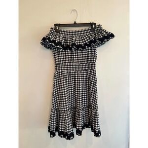 NWT MISA Los Angeles off the shoulder mini shift dress in black and white gingham check print