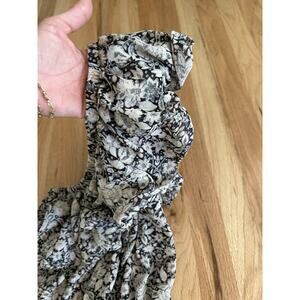 Misa One Shoulder Ruffle Mini Dress Floral Black Ivory Size Medium Josefine