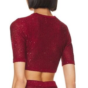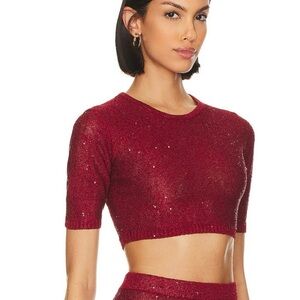 Shine in this elegant red sequin crop top. Perfect for a night out or special occasion. Pair it with your favorite bottoms for a stunning look.