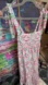 Self-tie straps and a square neckline with a fitted, ruched bust leading into a maxi skirt with wide ruffle trim