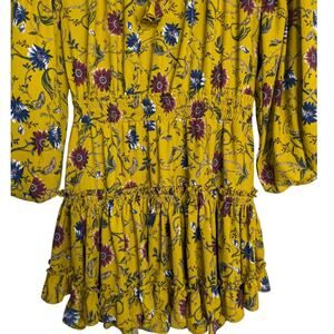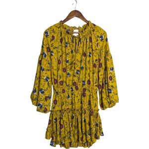 Misa Violet Dress Small Balloon Sleeve Smocked Mini Marigold Floral Yellow