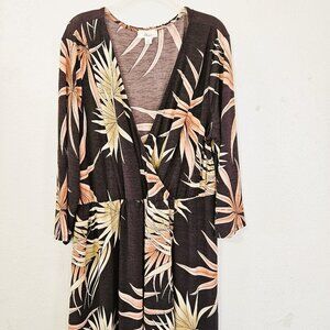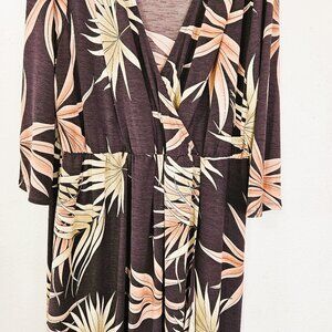 Misa Women's Plus Size 3X Faux Wrap Maxi Dress Bold Floral Brown Pink Print