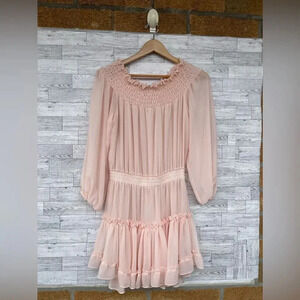 Misa los angeles blush off the shoulder chiffon mini dress medium