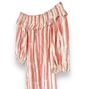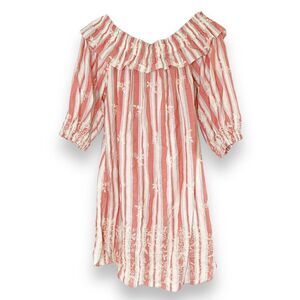 Misa Los Angeles Embroidered Mini Off Shoulder Tunic Dress Coral Red White Striped Women’s Size S