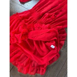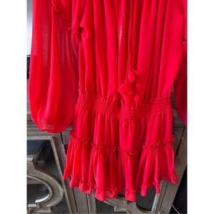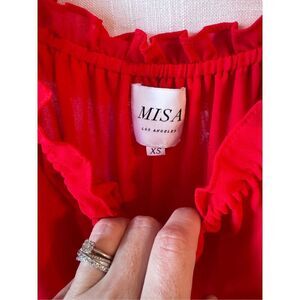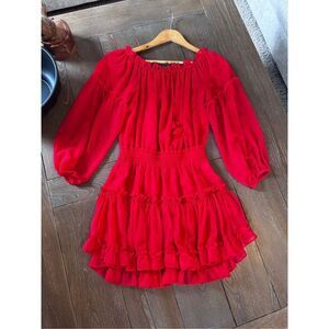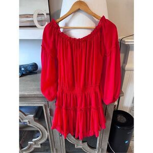Misa Los Angeles Off Shoulder Daria Boho Crimson Red Mini Blouson Dress Size XS