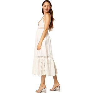 The Allegra dress is the definition of Spring chic with an ultra-feminine silhouette cut in a breezy cotton eyelet fabrication. A double spaghetti strap with criss-cross back leads into a flattering v-neckline and sheer eyelet waist detail. A double-lined skirt opens into a semi-sheer eyelet-trimmed hem. An elegant style for this season and beyond.
